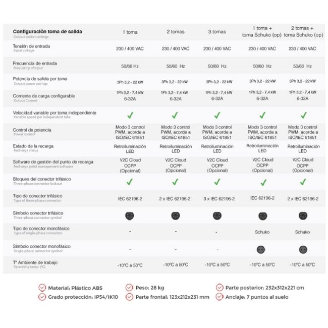 Sharing the e-Charger with several users has never been easier. Pole allows secure charging via RFID cards or the V2C Cloud multiplatform app.